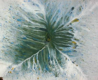 I am an action painter and work with canvas baths of water which I manipulate to create 'Water paintings'.