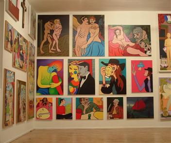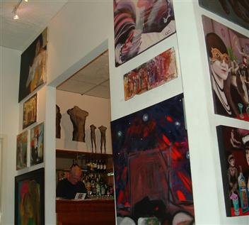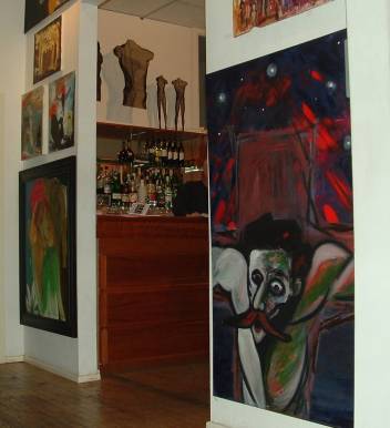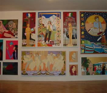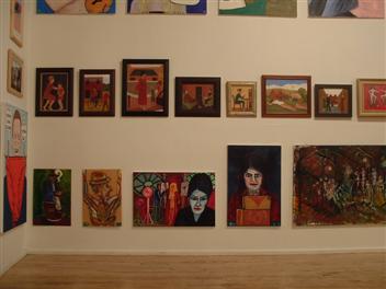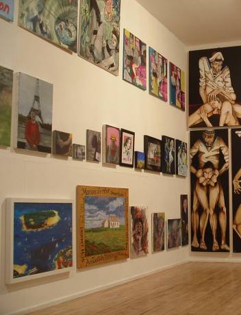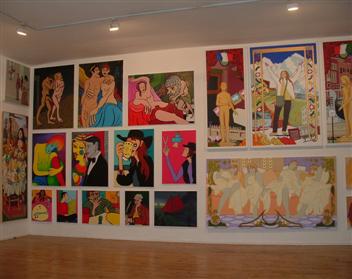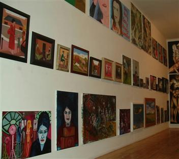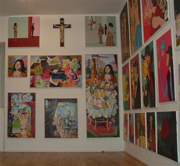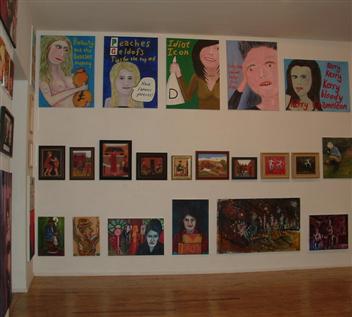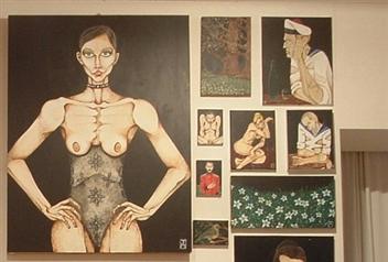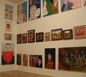 AN ANTIDOTE TO THE GHASTLY TURNER PRIZE This was an exhibition at Liverpool, of work by the controversial art movement known as It was showing at the View Two Gallery at Liverpool. It was a striking display, with paintings covering the walls from floor to ceiling. Works by two Welshpaintings artists, Jacqueline Jones and John Bourne, were included in the exhibition. The Stuckists are quite often featured on Welshpaintings, because Stuckism is a strong supporter of the art of painting, and a number of Welshpaintings artists are Stuckists or have links with Stuckism. This does not necessarily mean that Welshpaintings endorses everything every aspect of Stuckism. This is an opportunity to gain some impression of the exhibition and of this radical art group, which demonstrates against the Turner Prize at Tate Britain every December. There was some sexually explicit work in the exhibition. The View Two Gallery in Mathew Street is an excellent gallery, and the staff are most helpful to artists and public alike. |